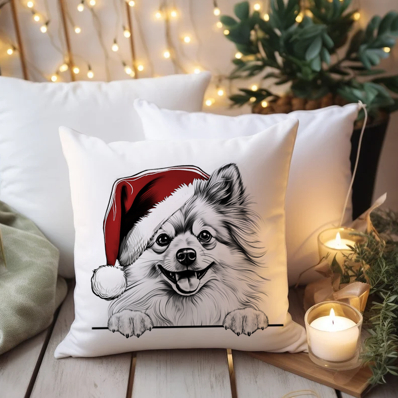 Vianočný vankúš s pomeranianom vykúzli u vás doma tú správnu sviatočnú atmosféru inšpirovanú vašim psíkom.