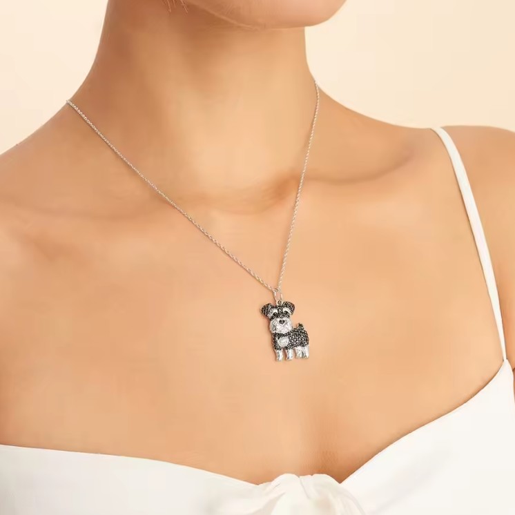 Elegantná retiazka s príveskom v tvare psa plemena bradáč v striebornej farbe s malými krištálikmi. Rovnako ako tento milý psík, aj tento módny kúsok bude veselým doplnkom vášho štýlového šatníka. Radosť tak isto urobí ako darček pre každého milovníka tohto psieho plemena či mladú slečnu, ktorá zbožňuje psy.