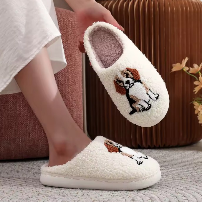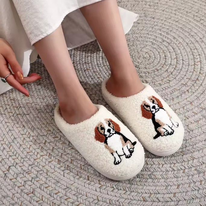 Roztomilé teplučké psičkárske papuče pre skutočných milovníkov psov s kvalitnou protišmykovou gumenou podrážkou.
