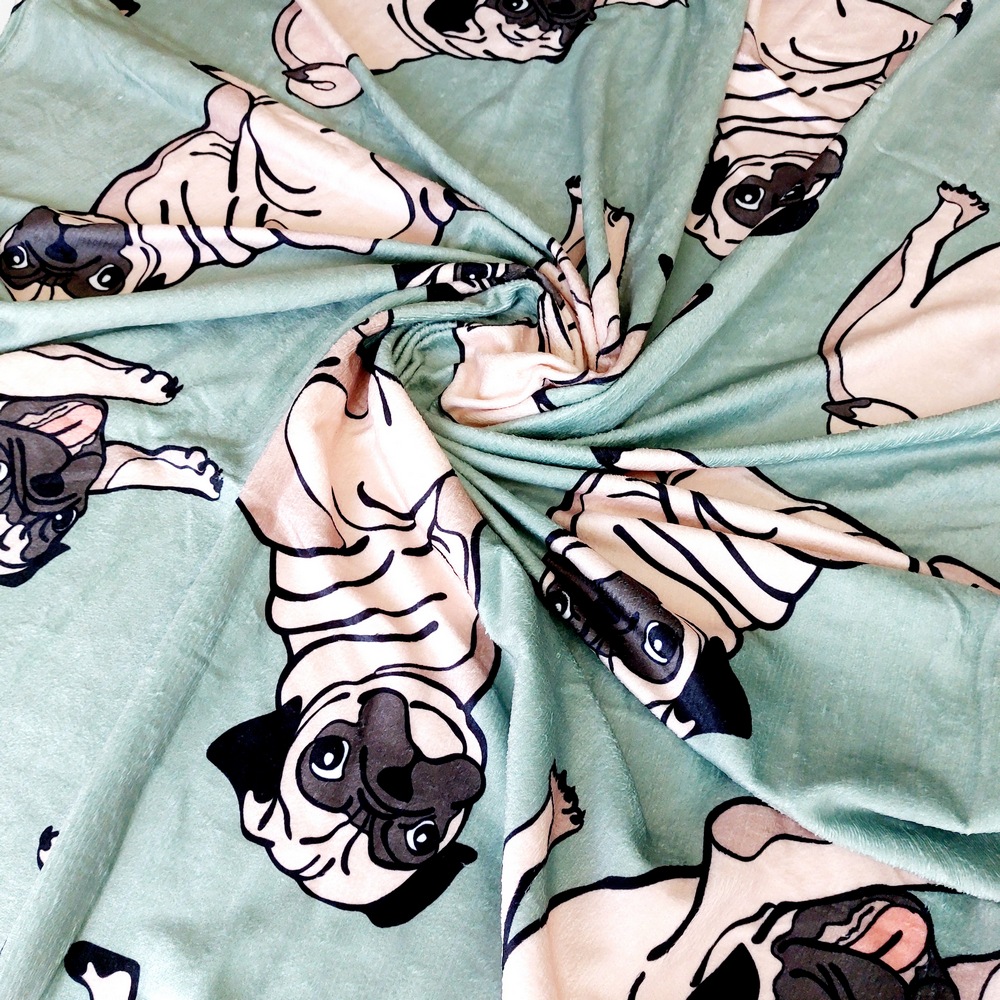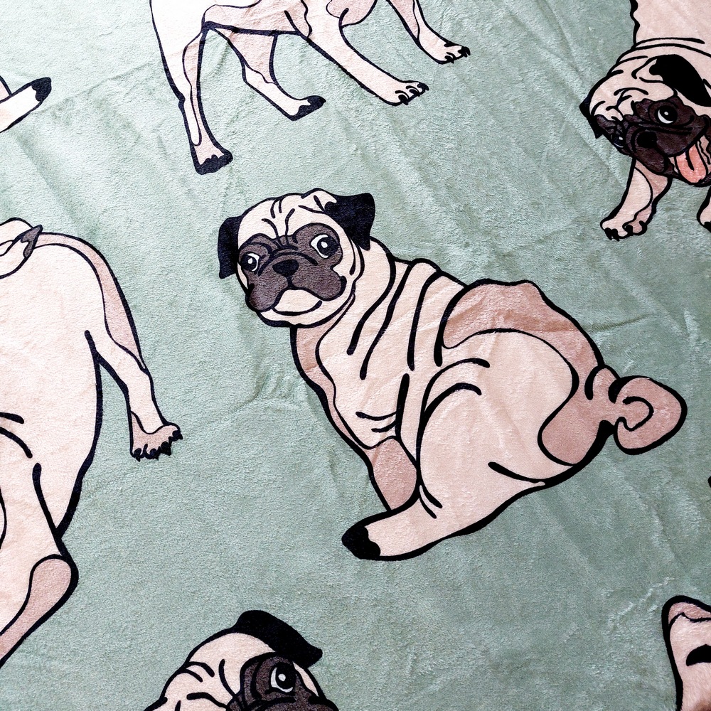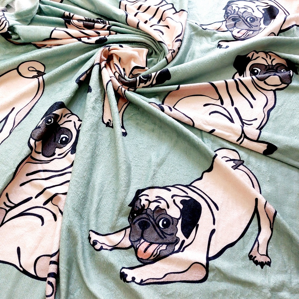 Nádherná mäkkučká deka z praktického mikrovlákna, ktorá sa veľmi ľahko udržiava s motívom veselích mopsíkov.