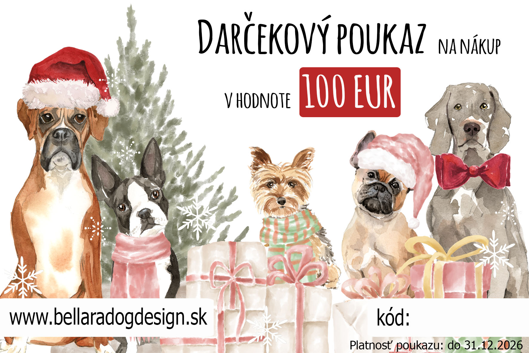 Vianočný darčekový poukaz v hodnote 100 eur na nákup tovaru na www.bellaradogdesign.sk