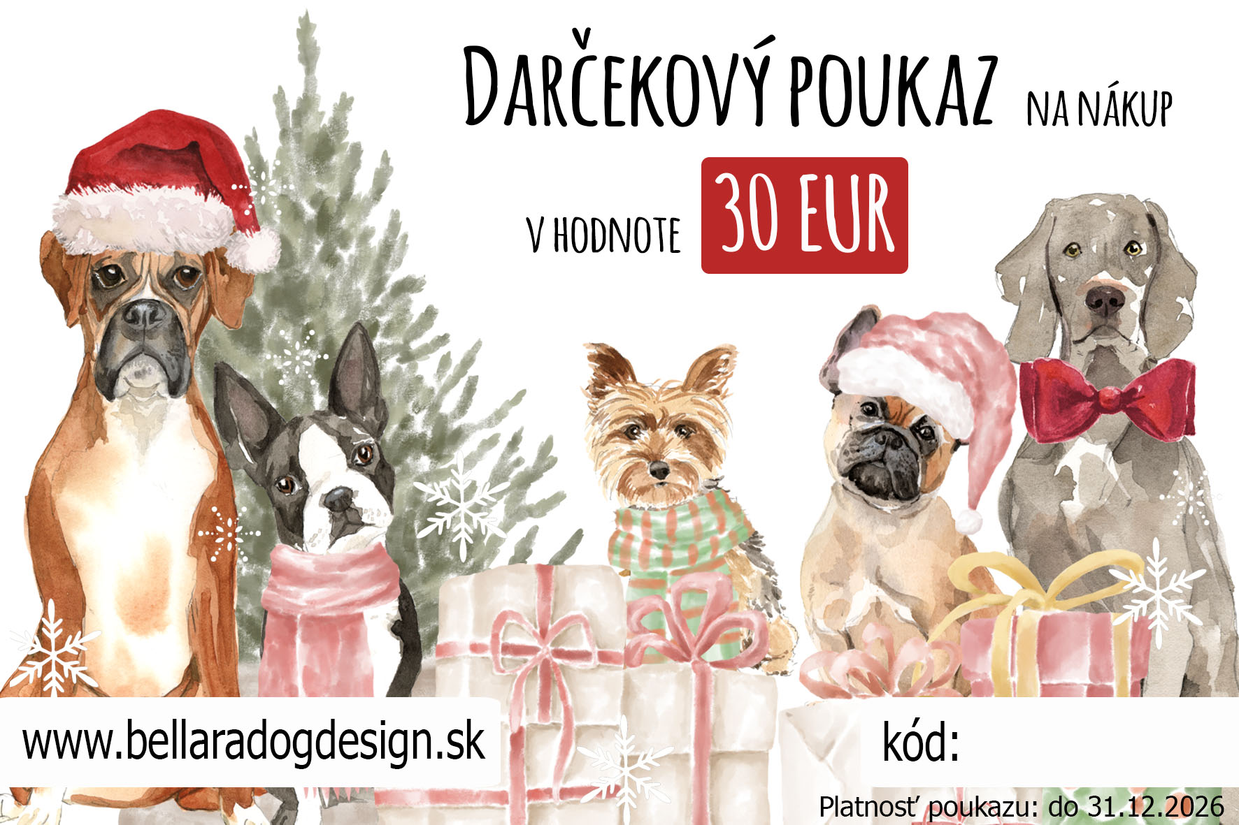 Vianočný darčekový poukaz v hodnote 30 eur na nákup tovaru na www.bellaradogdesign.sk